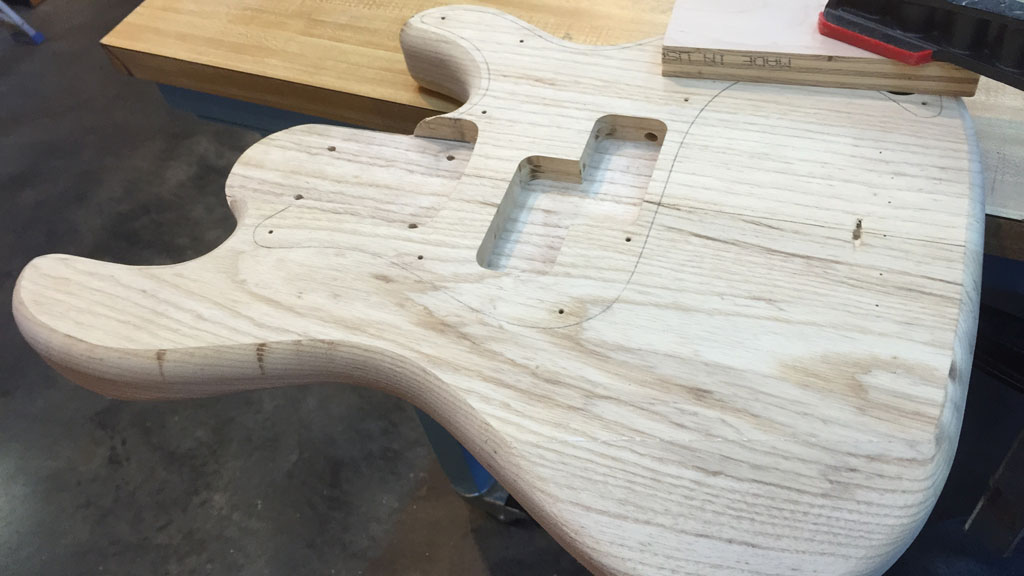 Below: Butt of the guitar (treble side), and another flat area is here that needs to be rounded.
