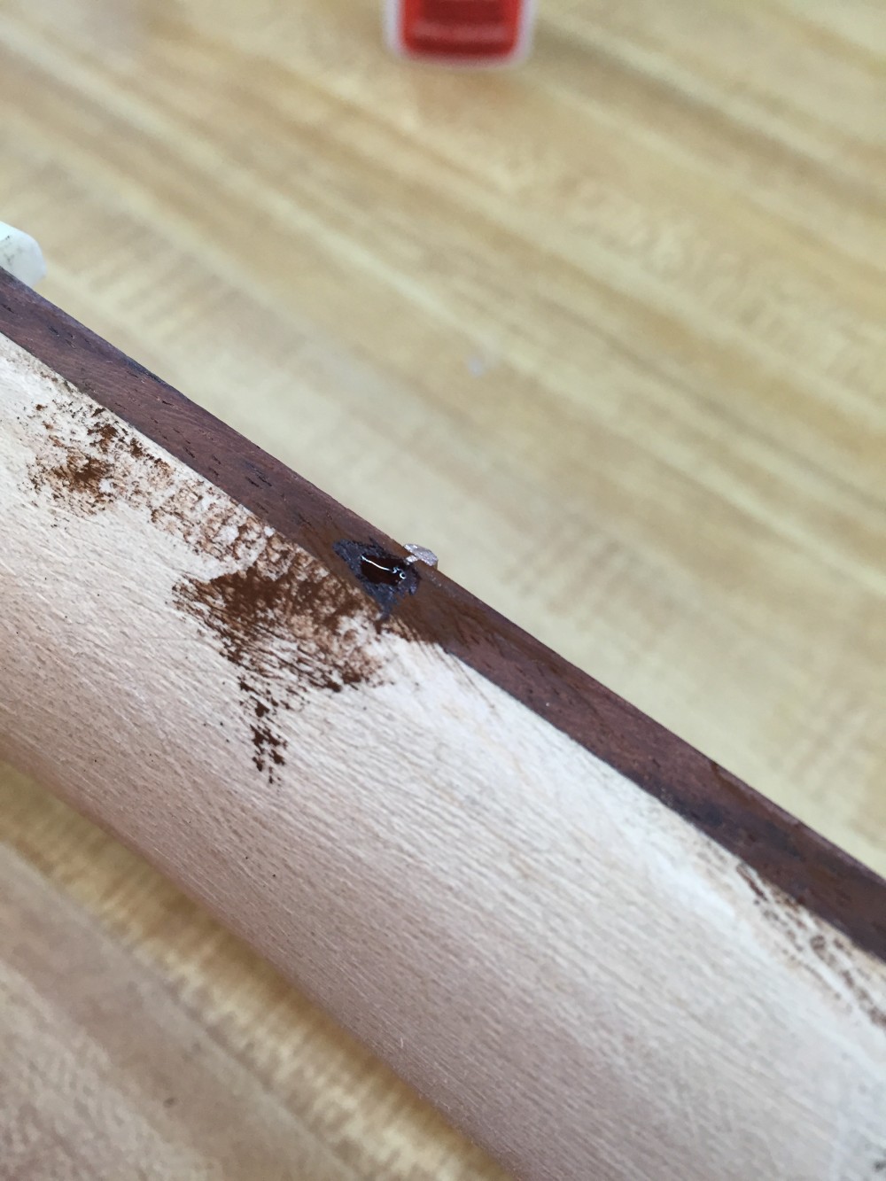 Below: The view after one drop of thin glue was placed in the appropriate area.
