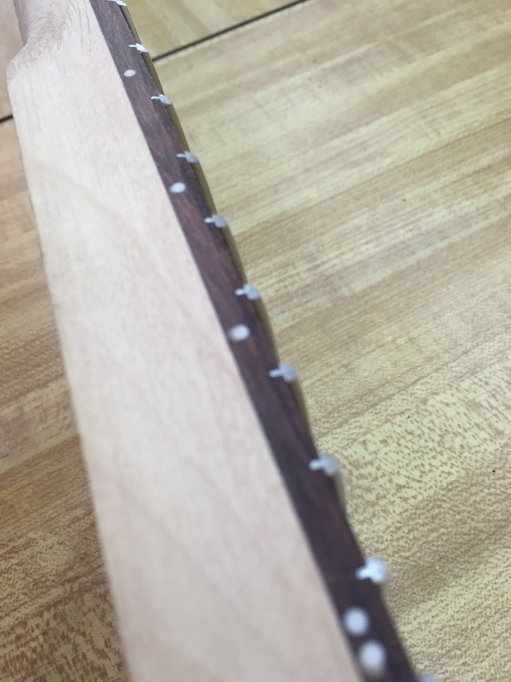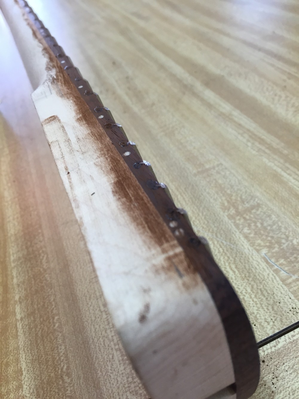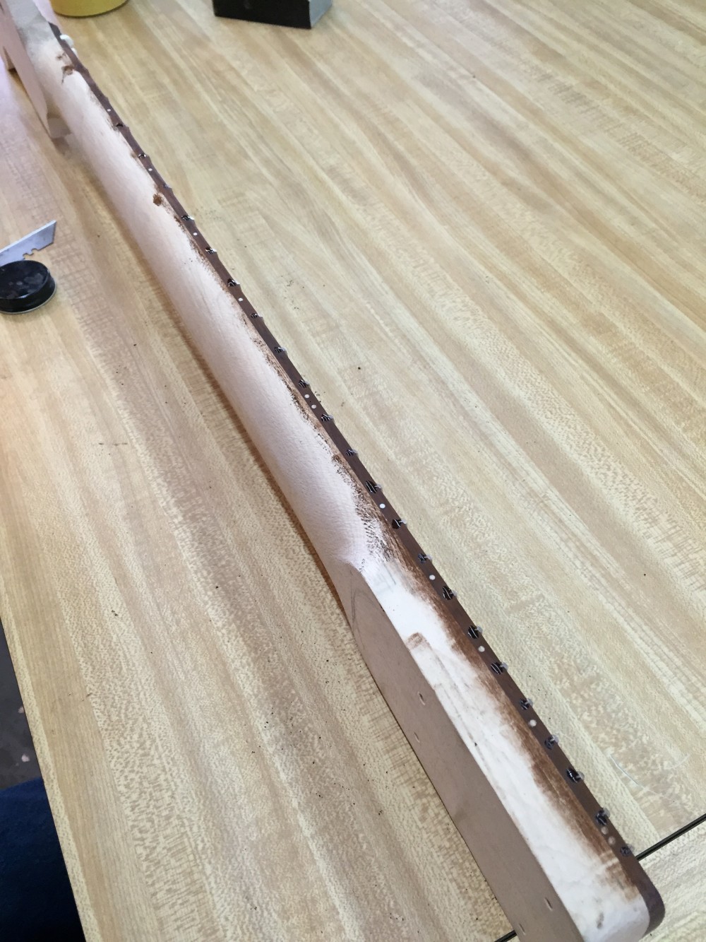 Below: The completed sanding. Note: The neck wood at this point is still unfinished and rough, so the sandpaper was used to clear off the extra dust.