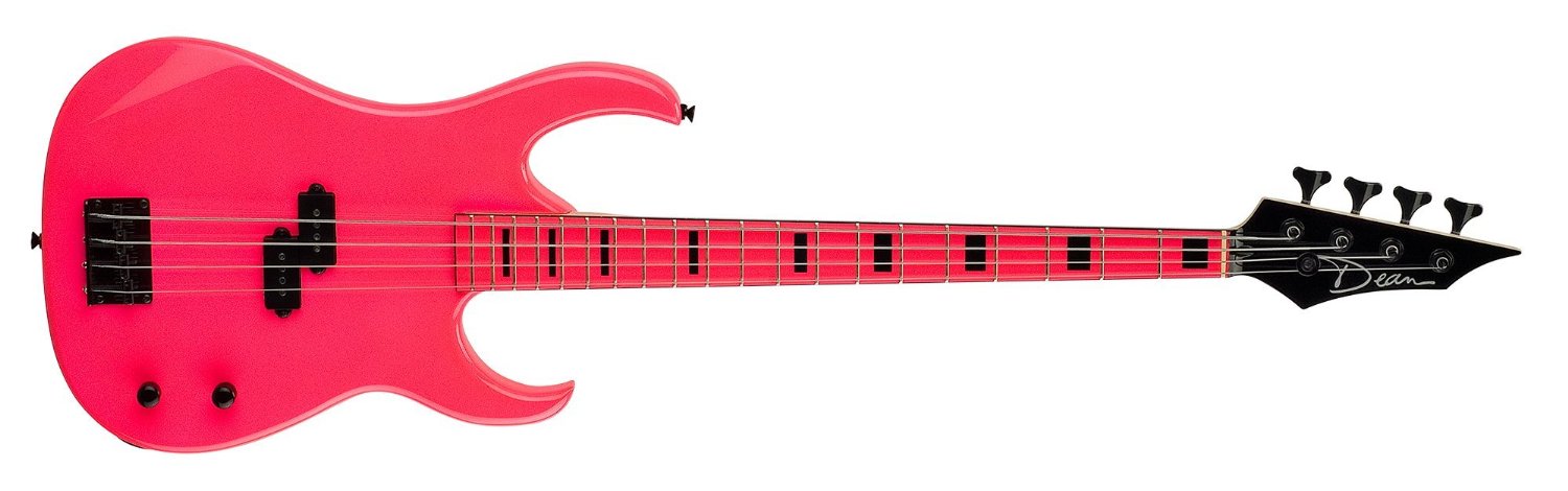 Given the fact there aren’t too many widely available hot pink bass guitar options out there, we took a guess that Pink Bass Player’s bass guitar was a Dean Custom Zone Bass, which is available with a fluorescent pink body and fingerboard. It doesn’t get any more pink than that on a bass. And yes, we were correct with our guess.