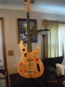 I wanted something that represents who I am and where I came from. I started building bass guitars back in 2007 after I was saved and baptized at my new church home and after I married my 4th wife Terry. I built one similar to this and sold it to my Brother Jeff in Texas in 2013. When I came home from vacation on that trip I decided I wanted one for myself!