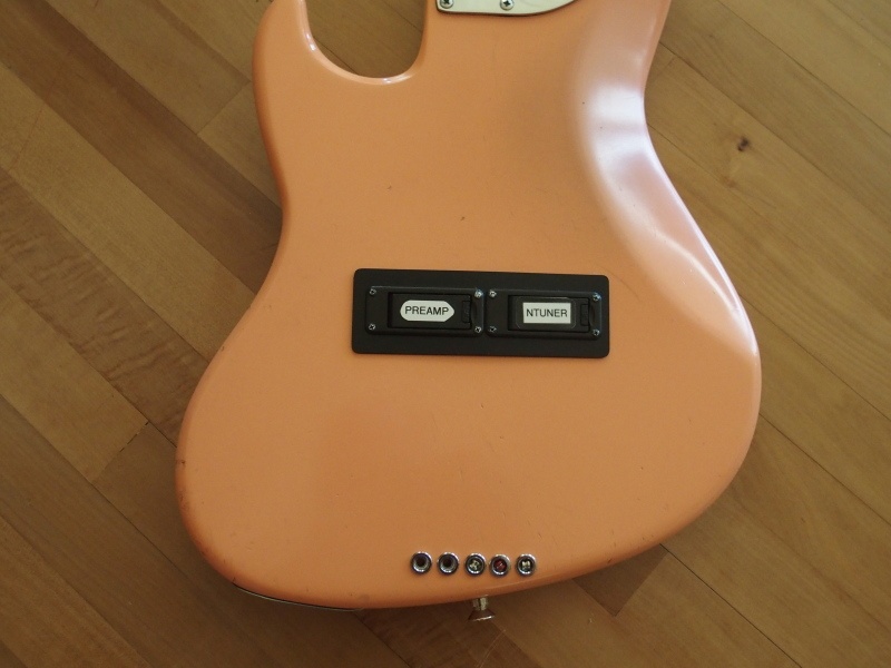 2. Interesting – especially considering it being done in the mid-80’s, when bass started becoming more of an up-front focus in music and technology and DIY “after-market” mods were stating to become vogue. I have designed/made a similar simpler version of the strap-peg extension for basses with small or no upper horn (T-bird/EB basses) but not sure why the brace is on this bass as the upper horn is right at the 12th fret which usually guarantees proper balance. Otherwise, it has many of the earmarks of cutting-edge innovation from that era; 24 frets, active preamp, HM bridge – and a decidedly “retro” colour. Wouldn’t touch it – it is a time capsule.
