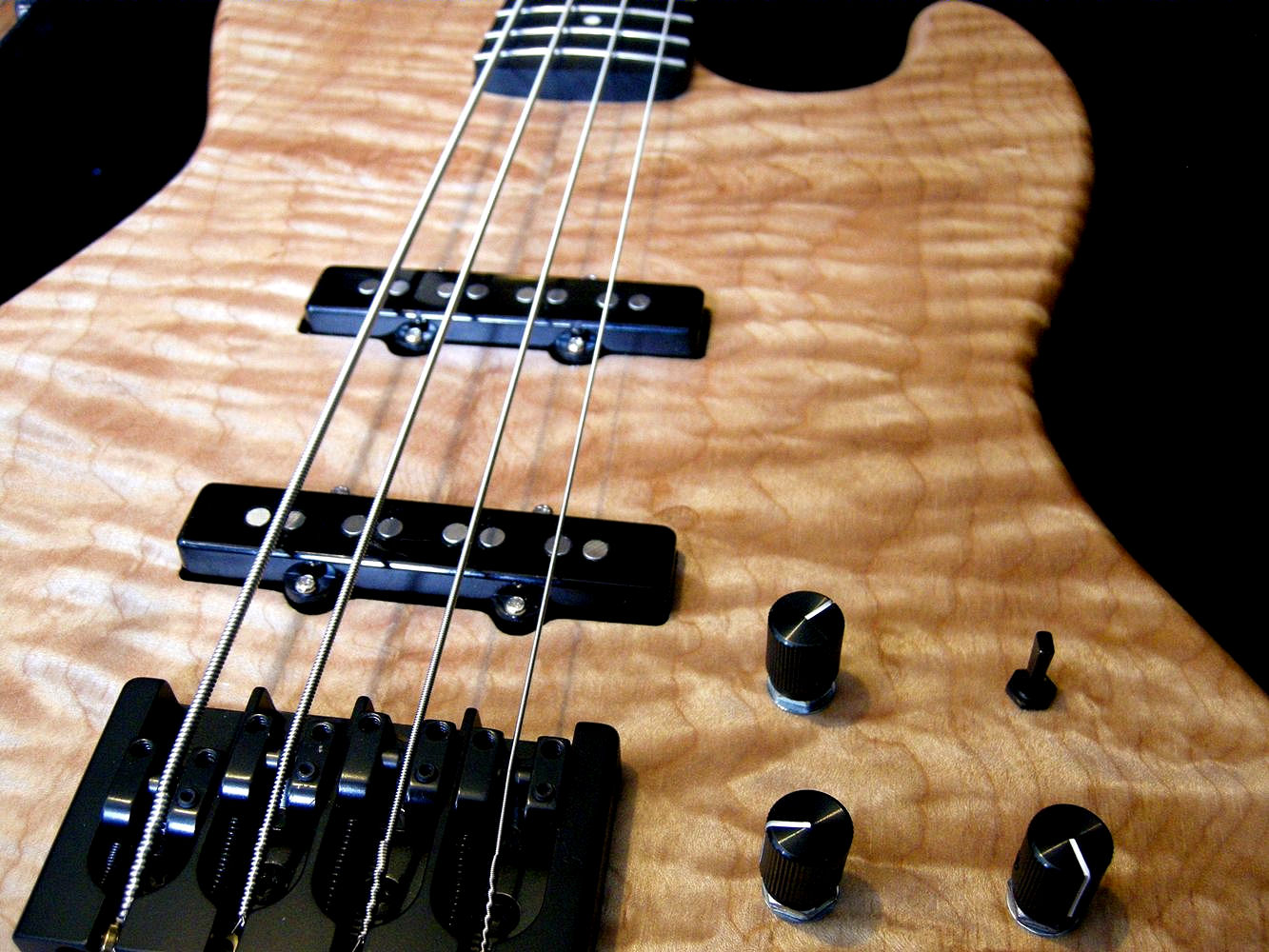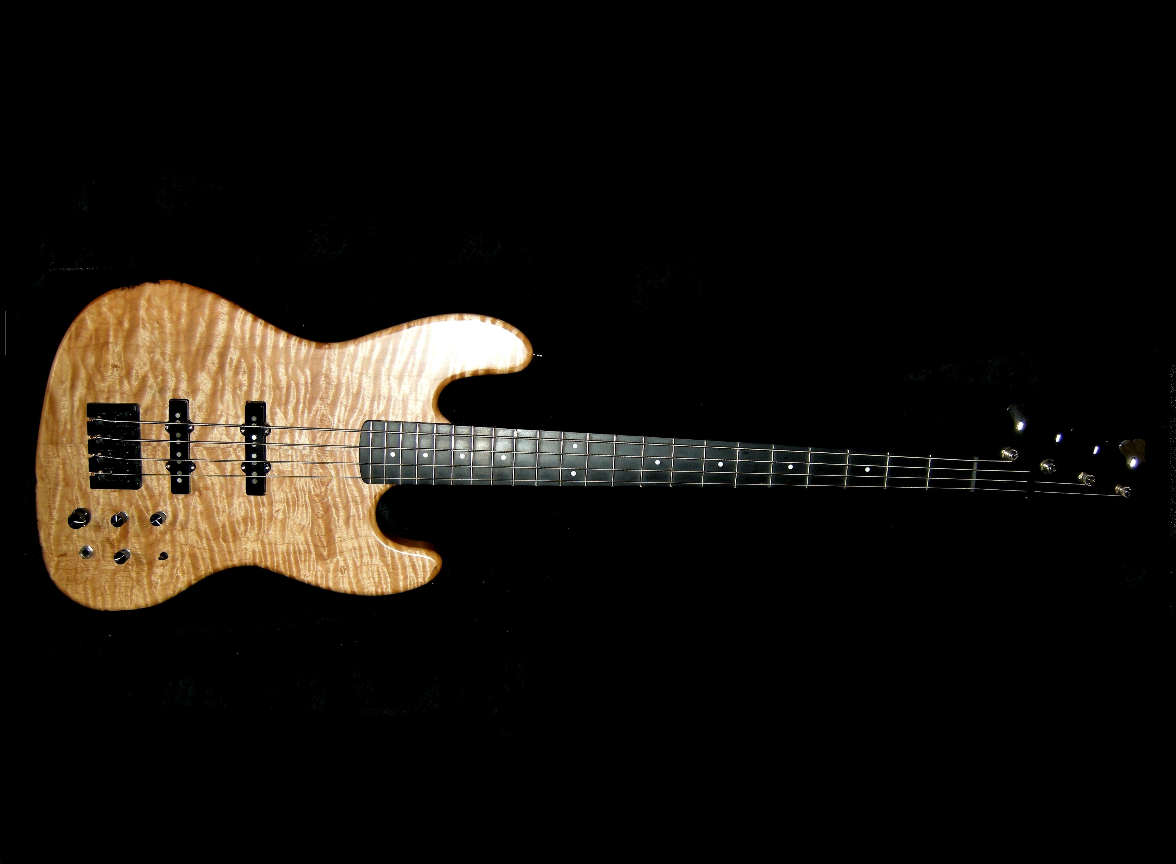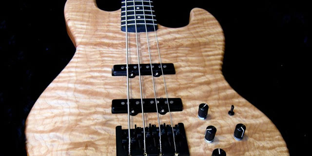 The bass body was made of 5A – Western Flamed Maple Laminate & Mahogany Body Combo (Exotic Woods Company Inc.)