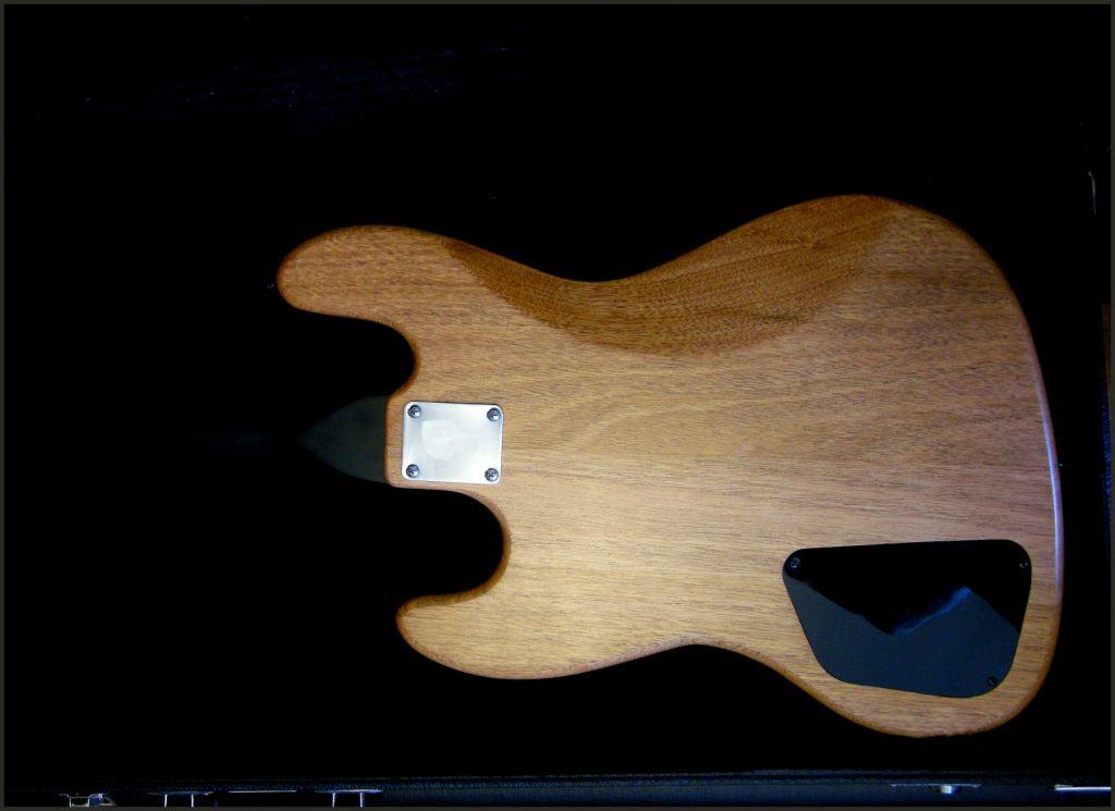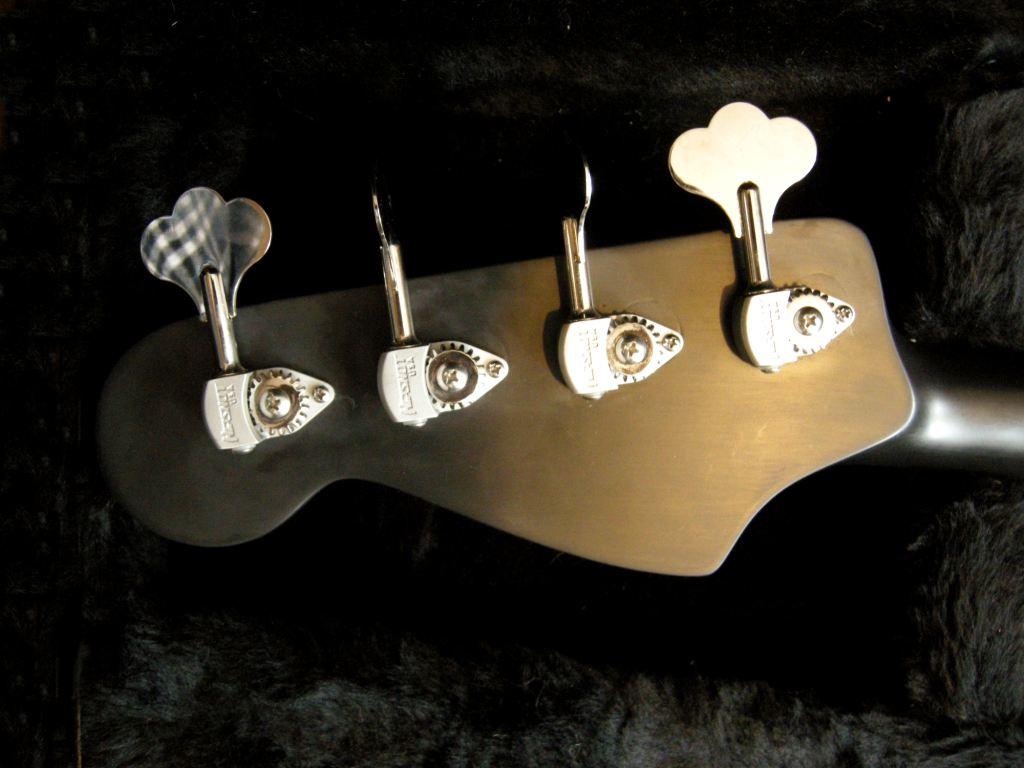 The bass neck is a 22 fret 4-st Jazz bass Mosses graphite with Hipshot Ultralite Fender tuning keys and a 4 string A style Hipshot Bass Bridge.