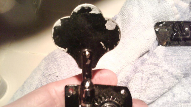 2. A few weeks or months later, the gloss of the paint is gone for wherever you touched the tuners with your fingers.