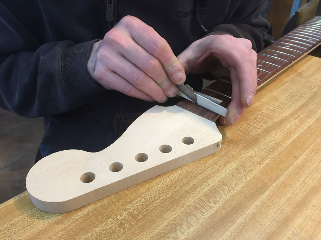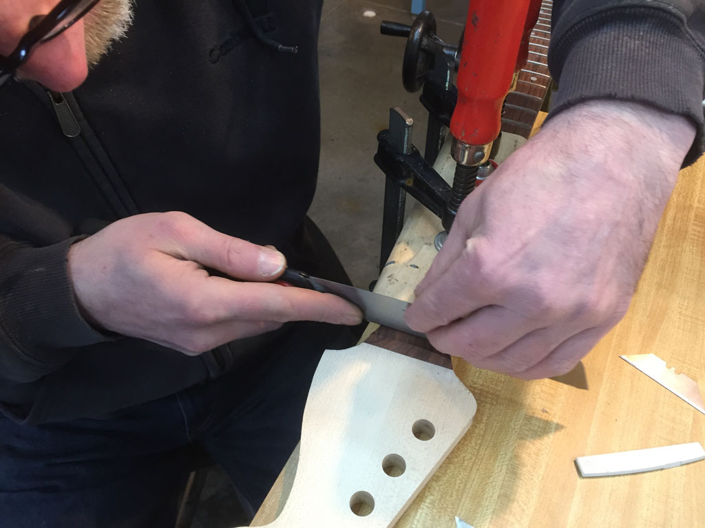 How to build a bass guitar – Cutting the nut slot and prepping the nut blank part 1