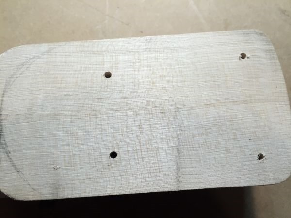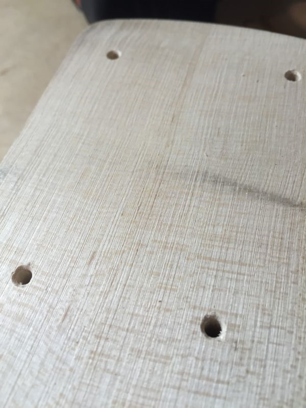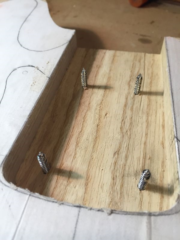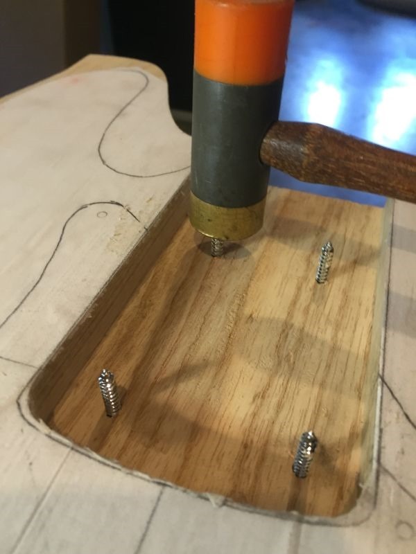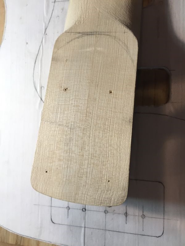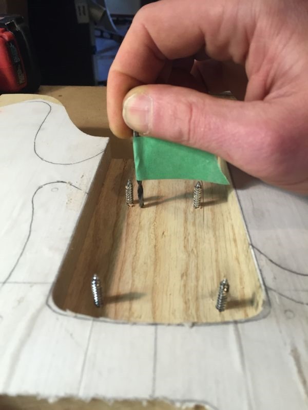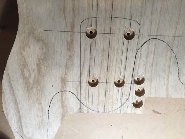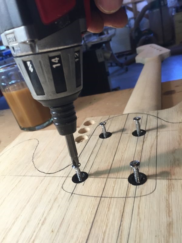 Below: Screws are shown from the neck pocket side after being driven through.