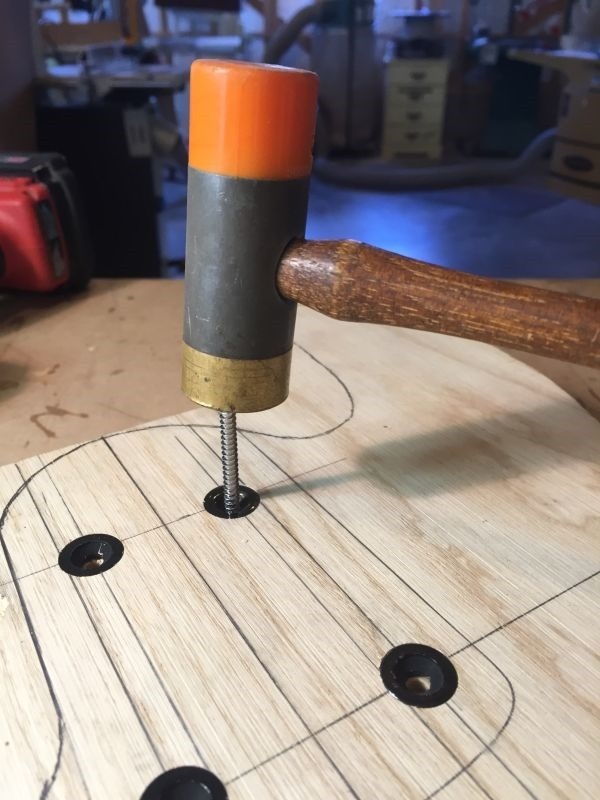 Below: Sending the screws back out using a hammer.