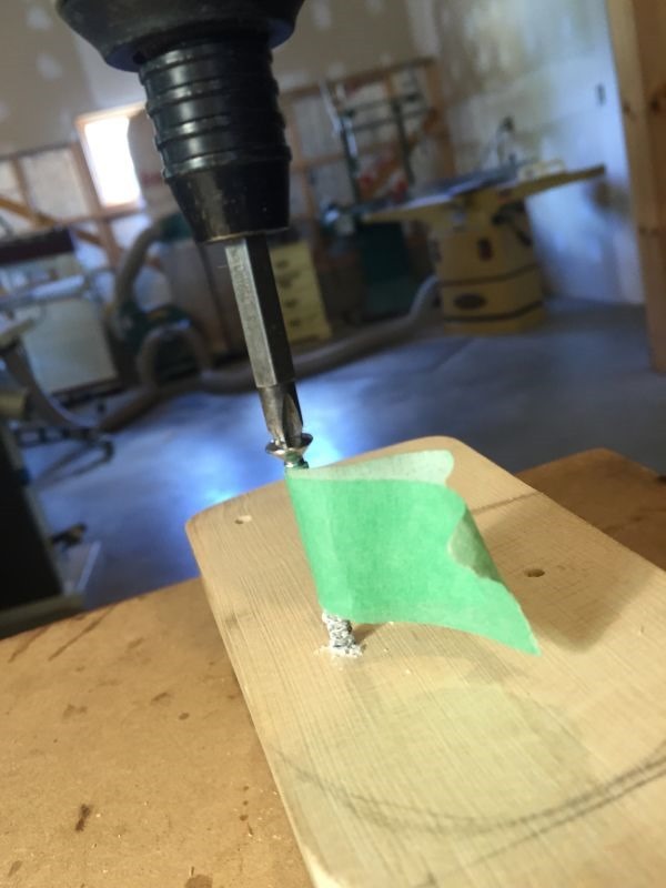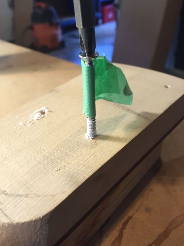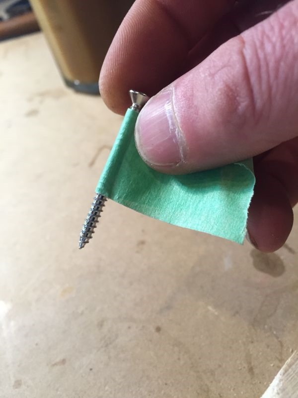 Below: Tape is applied to screw to act as a depth stop.