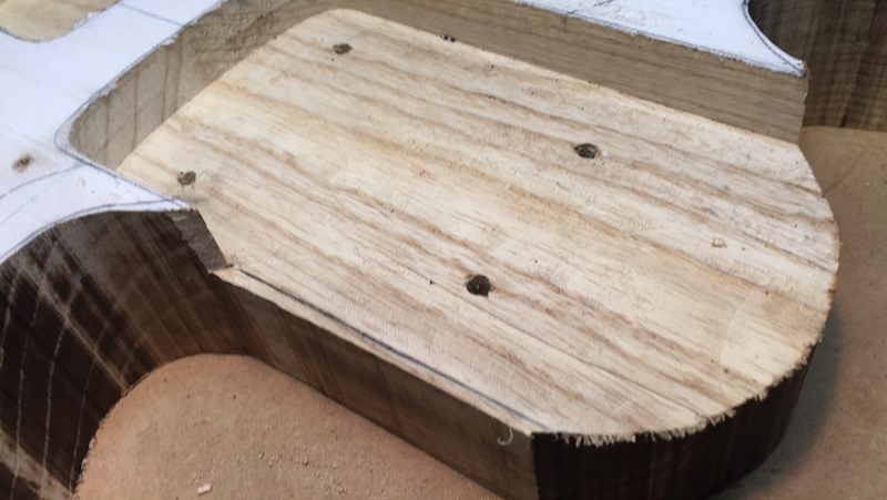 In this build step, the treble side rib is cut. A mistake was made where the cut wasn’t exactly flush so a chisel (not seen in the first photo below but seen later on) had to be used. Where wood is concerned, sometimes (or rather oftentimes) things don’t always go according to plan, so you have to be ready for contingencies. What you’ll see below obviously isn’t the worst error you’ll ever see, but you will gain knowledge on how to recover should it happen in your build.
