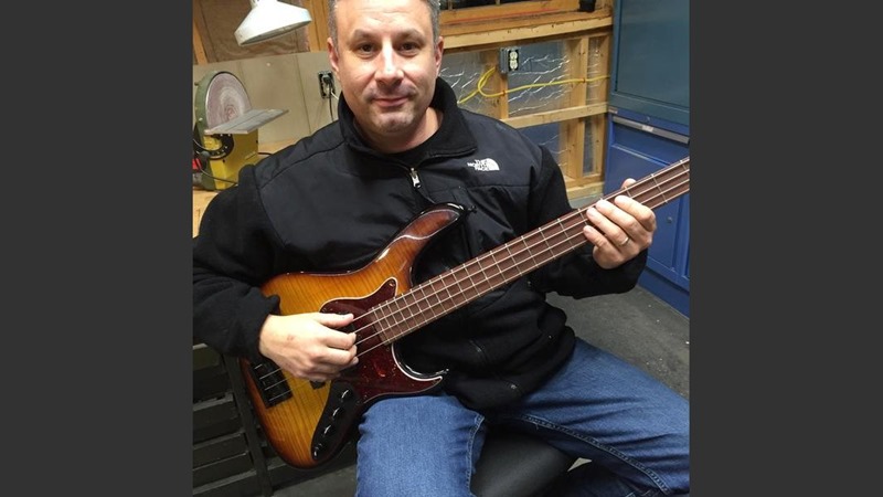 What you see above is a photo of Tom Ambrose, owner of what looks like an ordinary Jazz Bass from a quick glance. But it’s anything but ordinary.